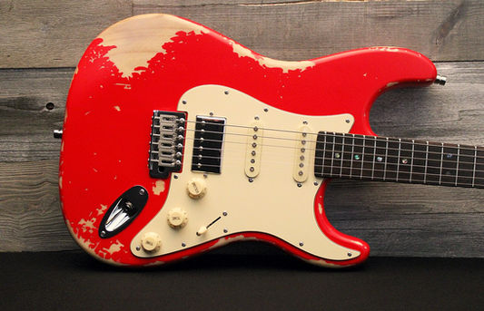 Henry's Electric Guitar in Cobra Red Relic finish combines classic design with modern craftsmanship. This Strat-style guitar features a lightweight Paulownia body, roasted maple neck, and rosewood fingerboard. Equipped with Henry’s Thick - Round HB-2 and Henry’s Vintage Crystal SC-1 pickups, it delivers a versatile and powerful sound. The relic finish adds a unique vintage look, making it a standout choice for guitarists.